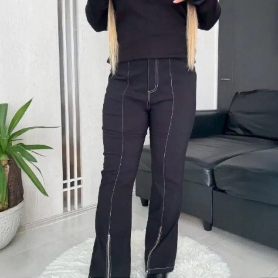 시마무라 멜리 콜라보 밑단 ZIP 세미 플레어 팬츠
