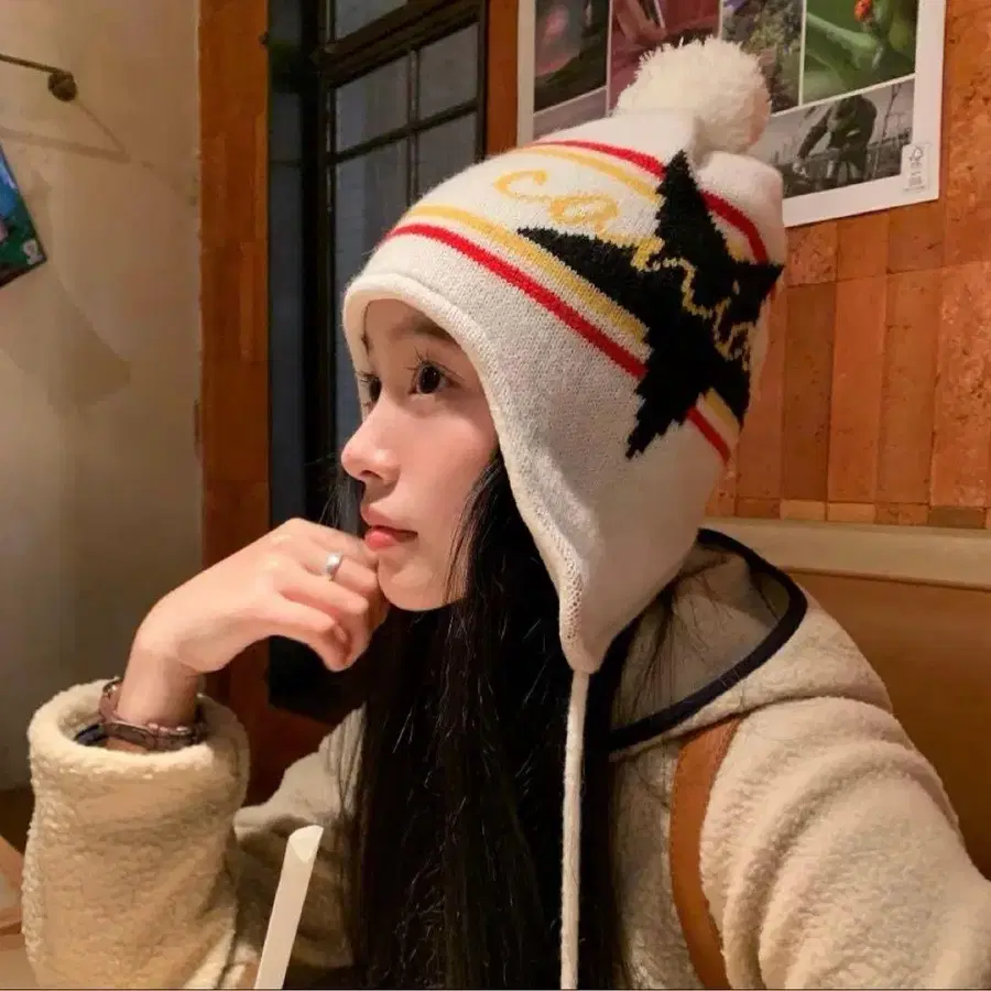 [ Y2K ] 스타 디자인 폼폼 귀마개 비니