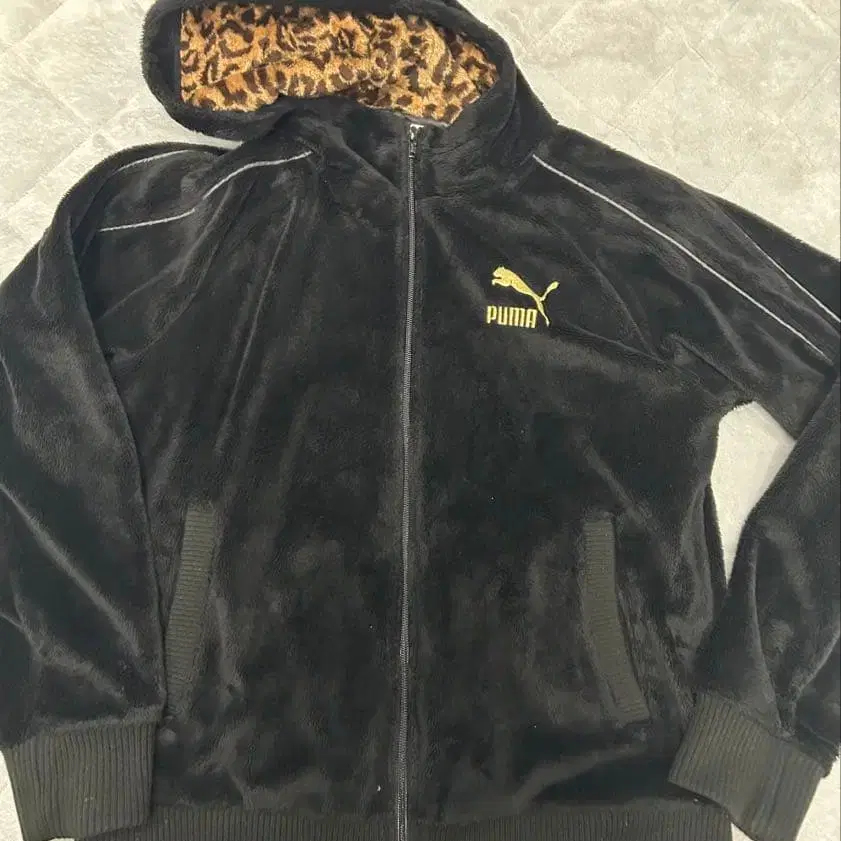 PUMA 벨벳 블랙 후드티 레오파드 무늬