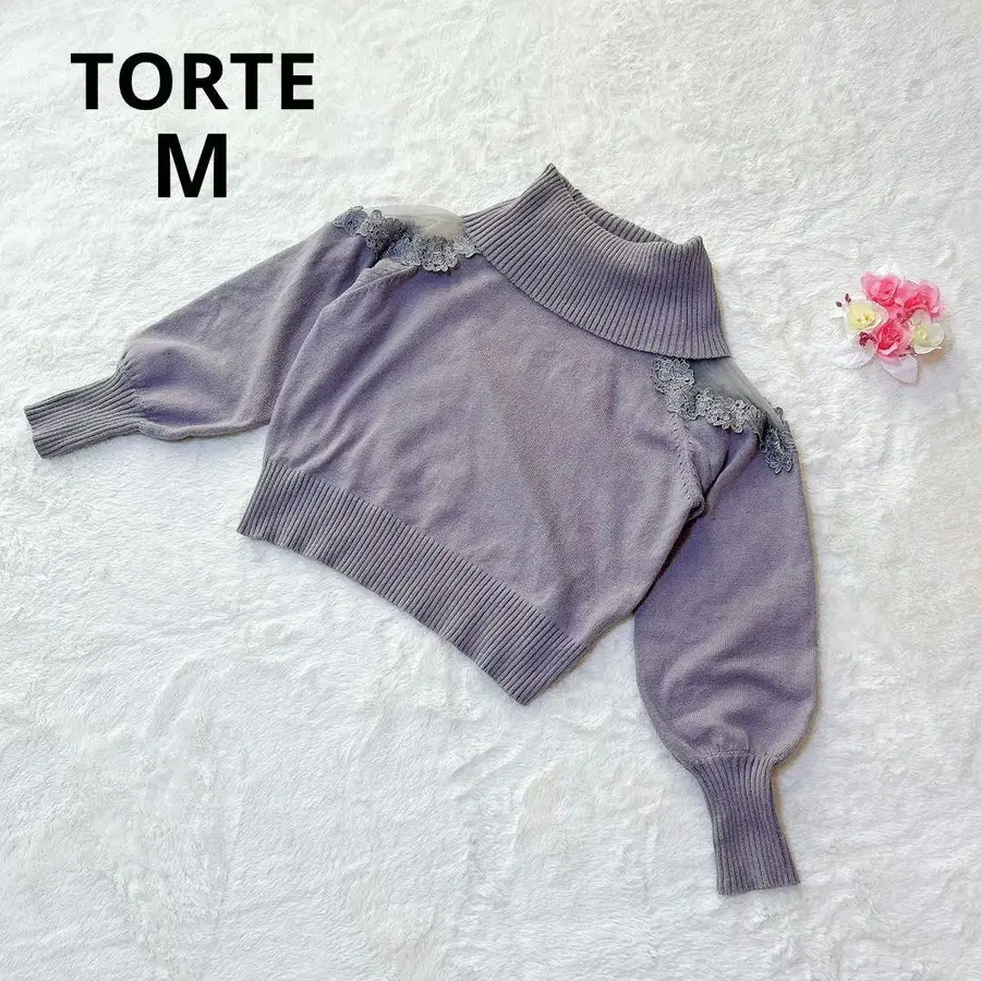 톨테 어깨 레이스 오프 터틀 니트 고급 페미닌 꽃무늬 스웨터 여성용