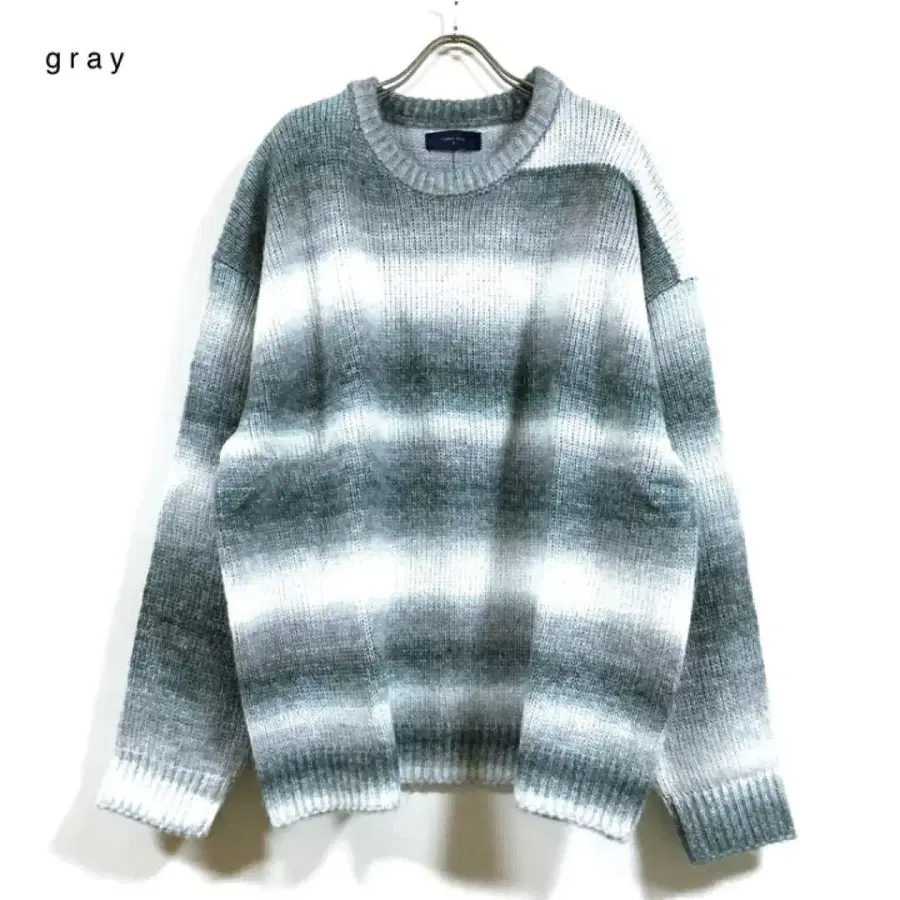 새상품 그라데이션 보더 빅 실루엣 스웨터 남성용 그레이 L