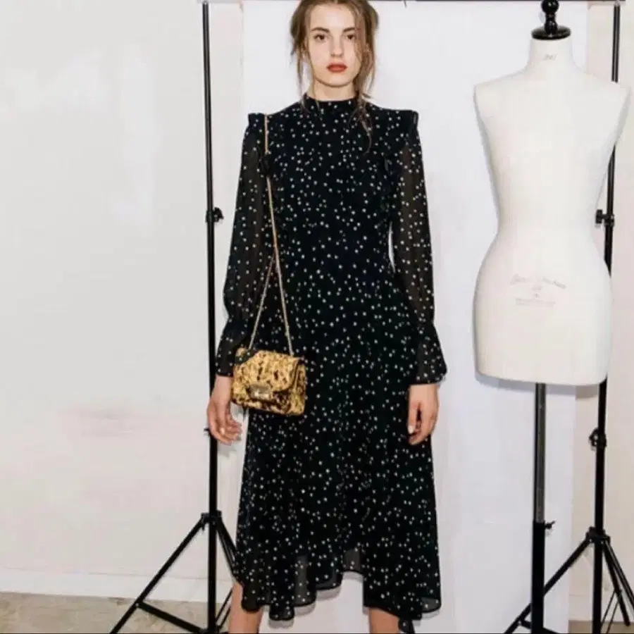 별이 흩뿌려진 쉬폰 원피스입니다.