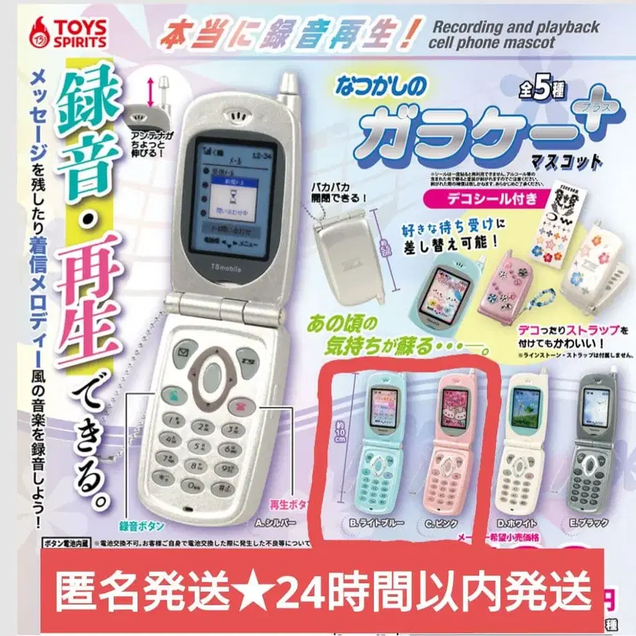 정말 녹음 재생! 그리운 옛날 휴대폰 마스코트 핑크 라이트 블루 가챠