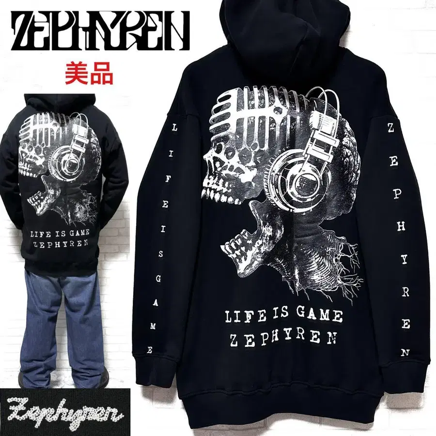 새상품급 ZEPHYREN 마이크 스컬 빅 프린트 풀오버 후디