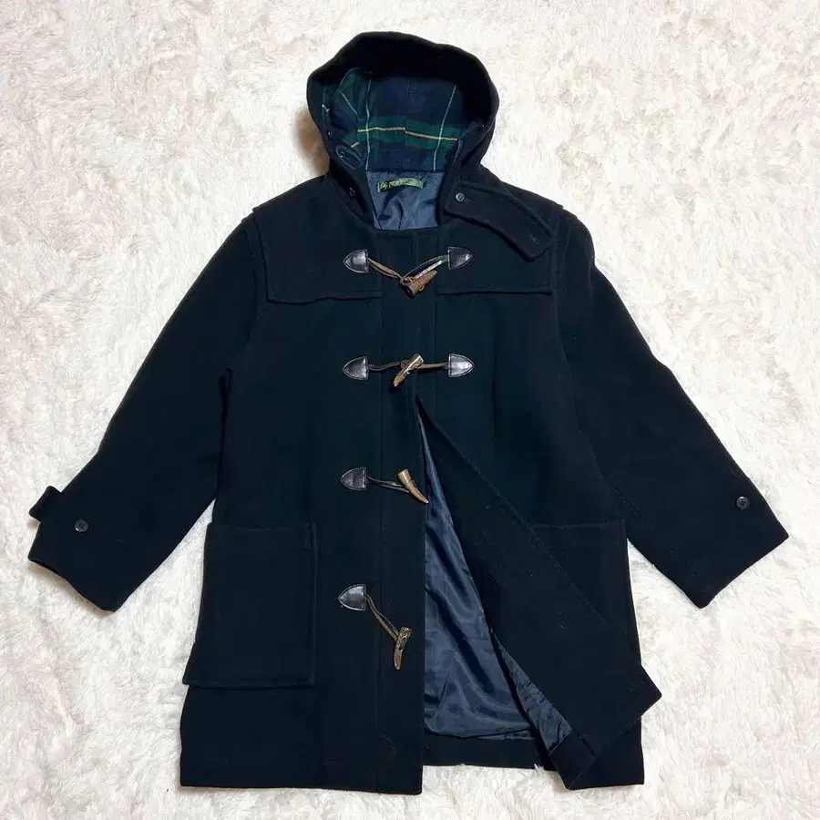 [ 새상품급 ] NEWYORKER 더플 코트 블랙 네이비 후드 안감 체크