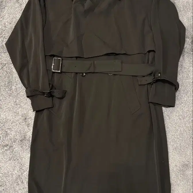 블랙 트렌치코트 더블 브레스트 벨트 포함 롱 코트