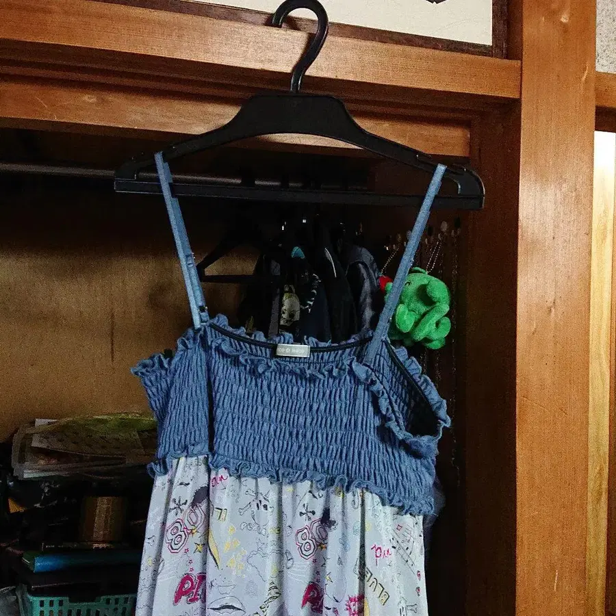 슬리브리스 원피스 파랑 그레이 프린트 패턴
