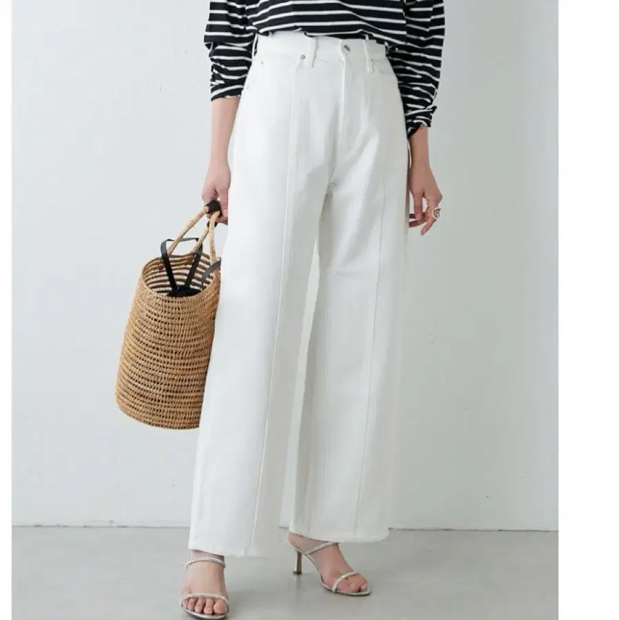 ■ 센터 절개 라인이 악센트가 된 와이드 데님 팬츠.