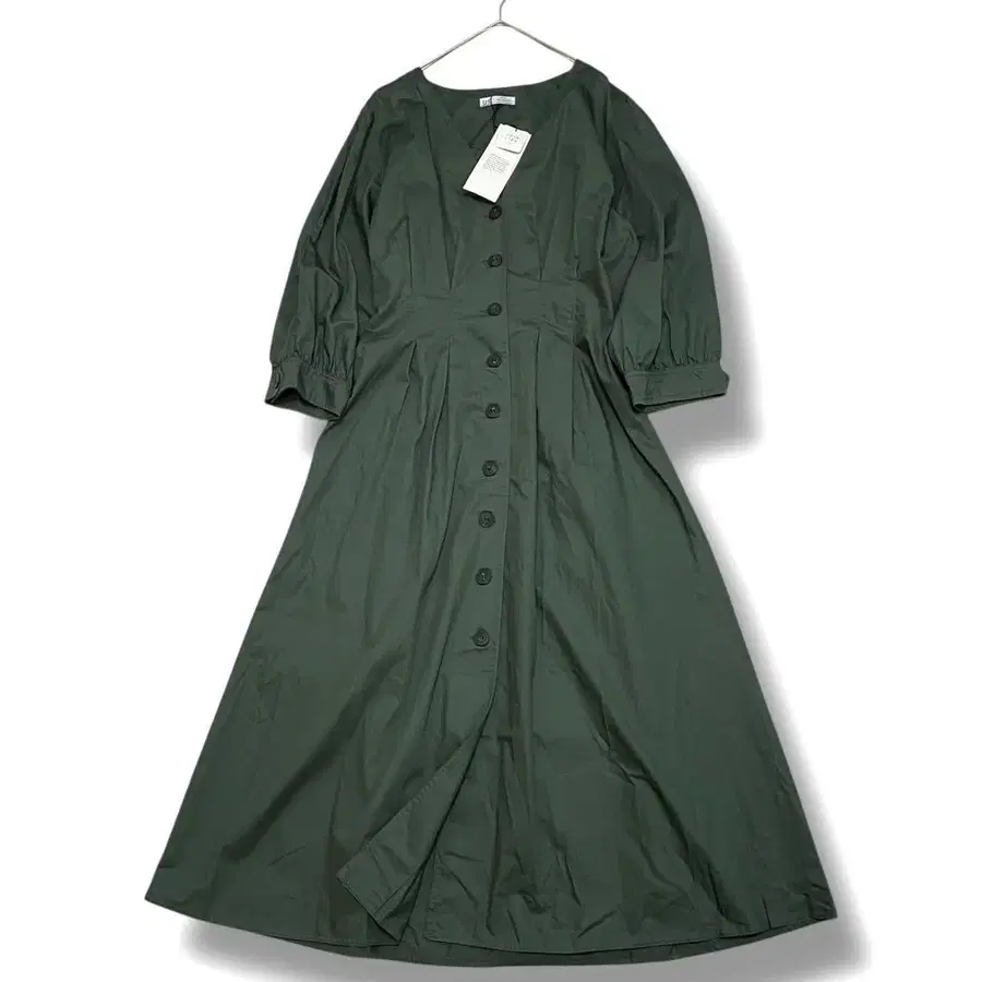 • ZARA 자라 TRF 카키 볼륨 슬리브 롱 셔츠 원피스