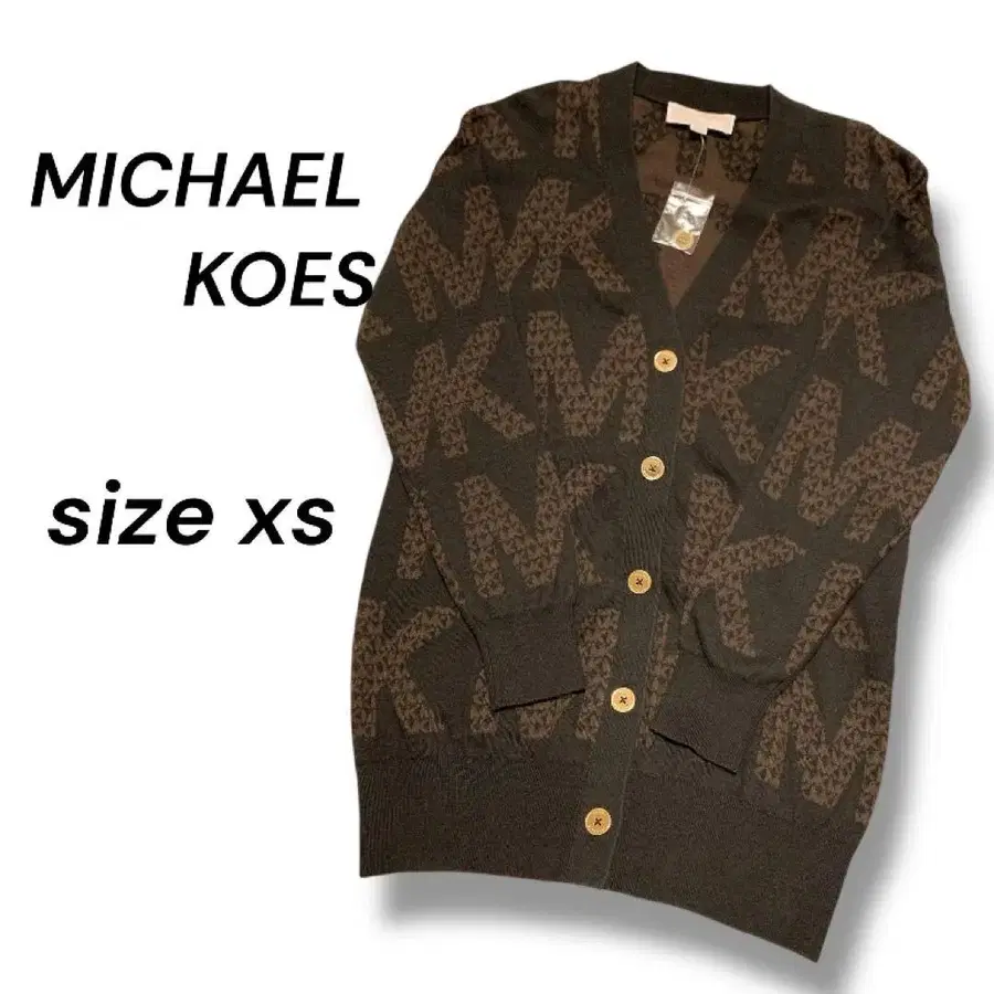 MICHAEL KORS 로고 니트 가디건 골드 버튼 XS 브라운 루즈핏