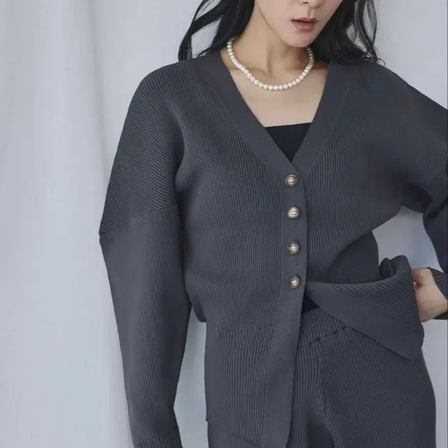 셋업 드롭 숄더 리브 니트 가디건 & 골지 니트 팬츠