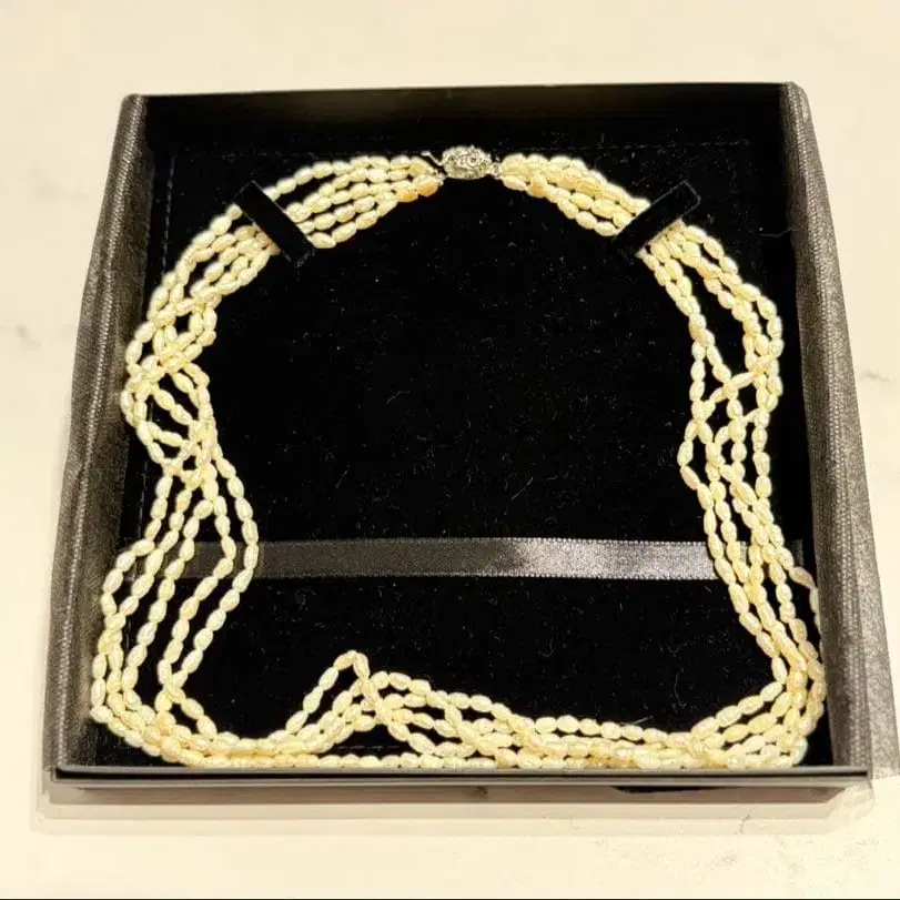 아름다운 담수 진주 5연 목걸이 silver 금장 장식