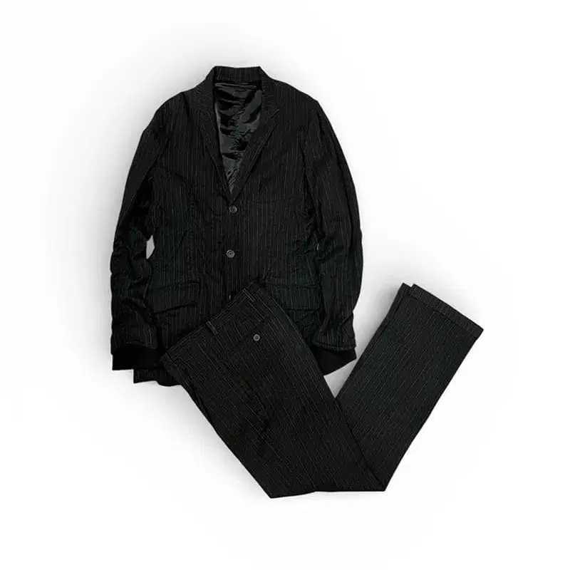 ◆ 실측치수: 자켓 size:3 기장 약 73cm, 가슴 너비 약 54cm, 어깨 너비 약 44cm, 소매 길이 약 69cm. 팬츠 size:2 허리 약 38cm, 밑위 약 33cm, 인심 약 76cm, 밑단 폭 약 20cm. (약간의 오차는 양해 부탁드립니다.)