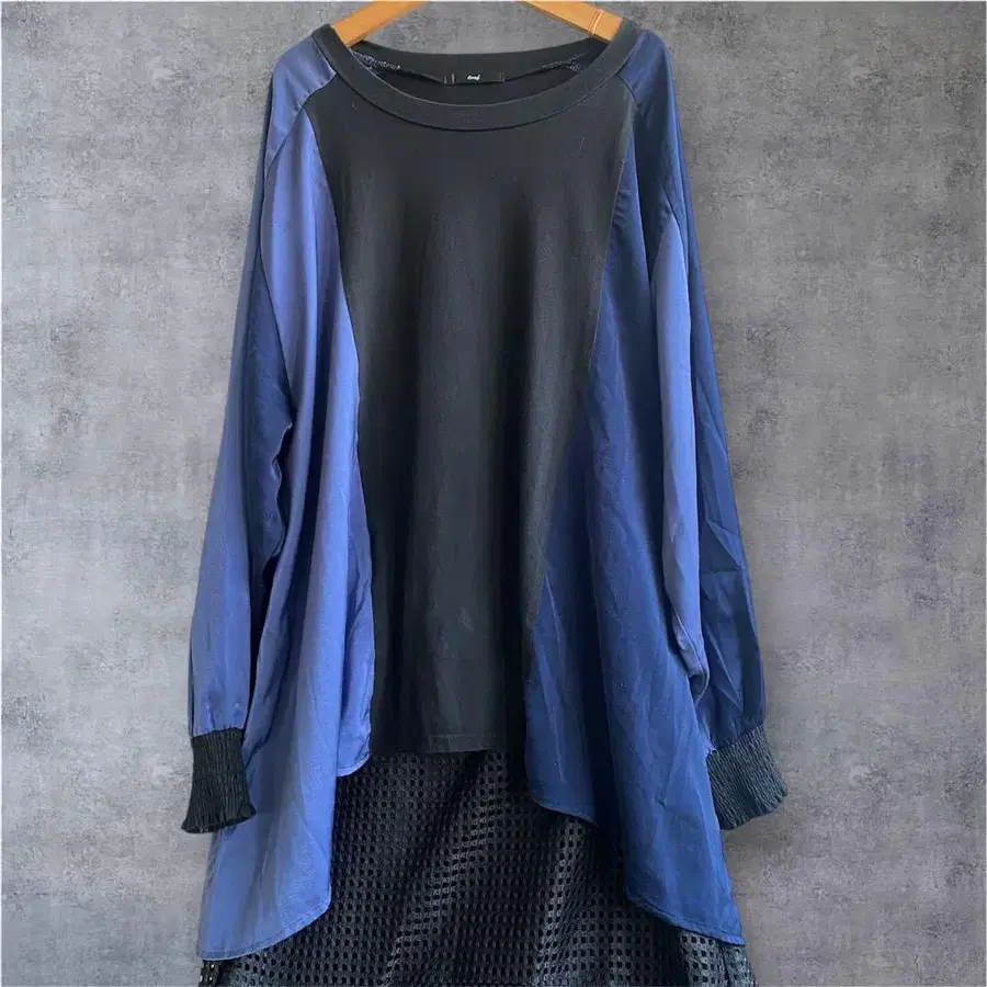 미사용 새상품 이마쥬루쥬 쉬폰 절개 바이컬러 튜닉 블랙 L