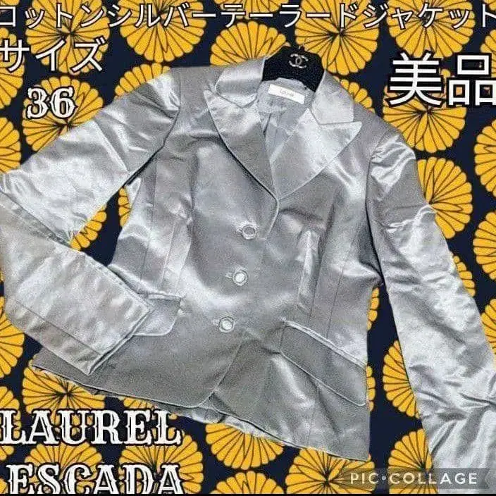 새상품급 로렐 에스카다 테일러드 자켓 실버 블레이저 은 면 봄