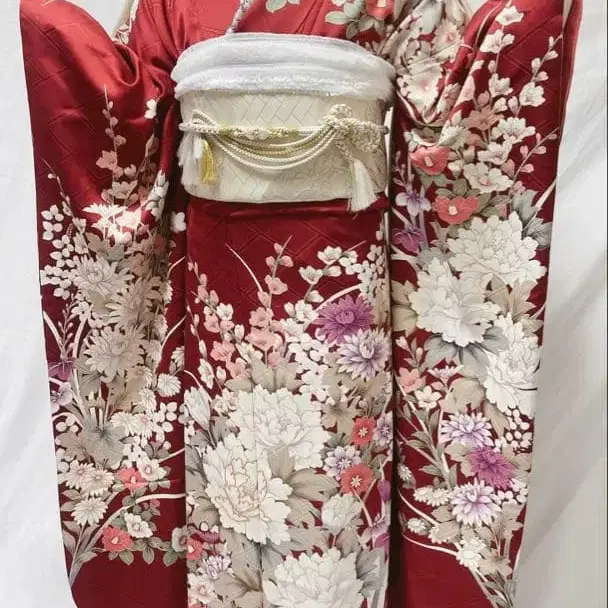빨간색 꽃무늬 후리소데 후리소데 성인식 후리소데 7세트 후리소데 풀세트