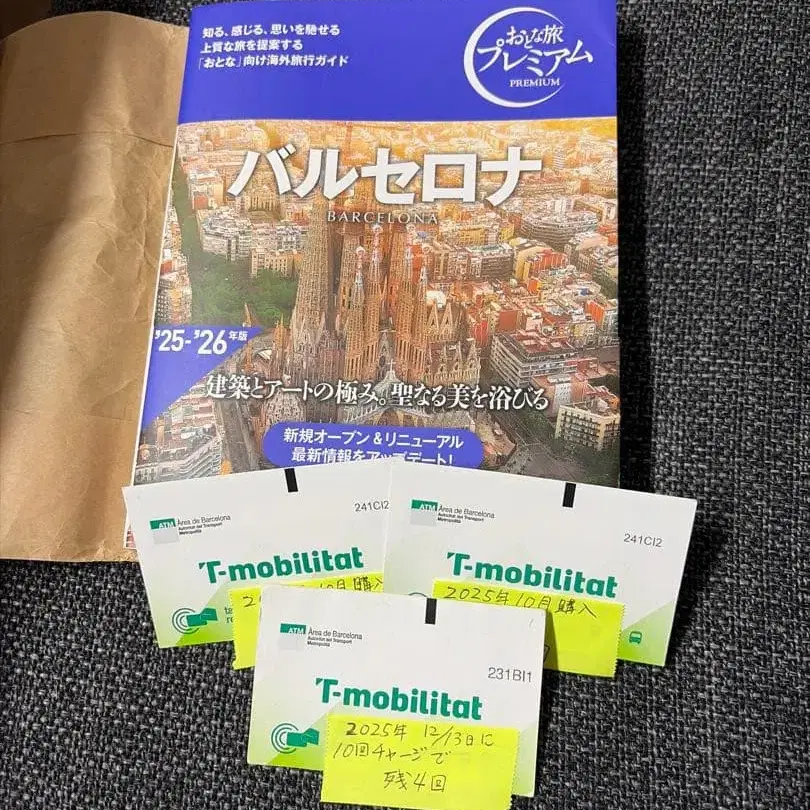 방문해 주셔서 감사합니다. 어른 여행 프리미엄 바르셀로나 2025~2026년 판입니다. 2025년 12월에 바르셀로나로 여행했을 때 사용했던 물건입니다. T-mobilitat 카드 2장은 사전에 라쿠마에서 구매했었는데, 현지에 가져가는 것을 잊어버려서 그대로 4회씩 남아 있습니다. 다른 카드 1장은 현지에서 10회 충전하여 4회 남아 있습니다. 카드 3장 모두 4회씩 남아 있습니다. 엔저로 유로가 183엔이고, 판매기, 알아보기 어려워 일본에서 사전 구매하는 것이 원활할 것이라고 생각합니다. 공항버스는 사용할 수 없지만 존 1의 지하철, 구엘 공원행 24번 버스 등 주요 지역에서는 사용할 수 있어서 추천합니다. 기한이 내년 2월 28일까지이므로 필요한 분에게 저렴하게 양도합니다. 중고품이므로 약간의 흠집은 양해 부탁드립니다. 논클레임, 논리턴으로 잘 부탁드립니다. #바르셀로나 #T-mobilitat #가이드BOOK #스페인