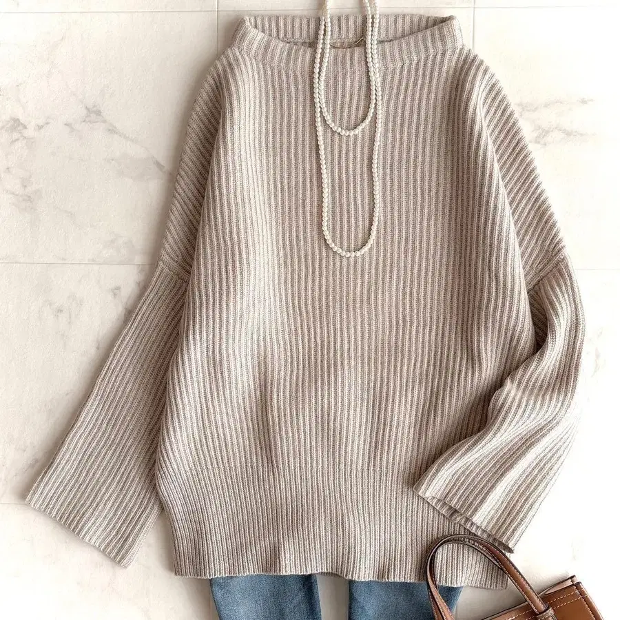 적당히 여유 있는 실루엣으로 몸의 라인을 드러내지 않아 데님이나 스커트 등 어떤 하의와도 폭넓게 매치하기 좋은 니트입니다.