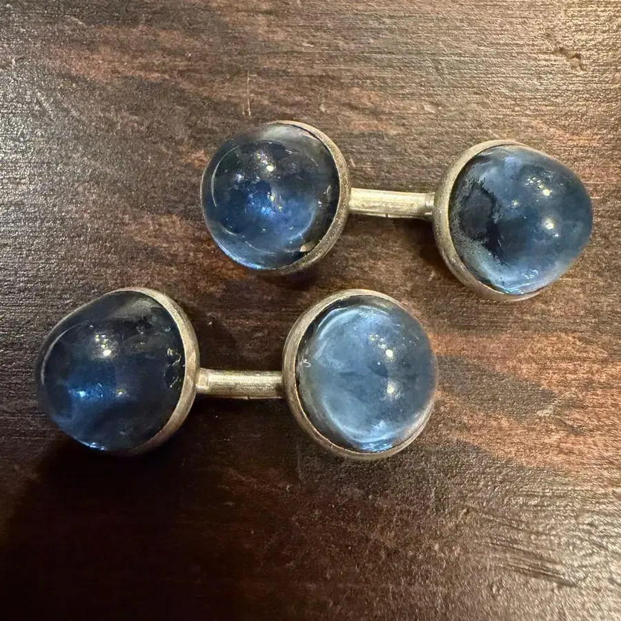 US 빈티지 커프스 단추 커프 링크 블루 돔 스톤