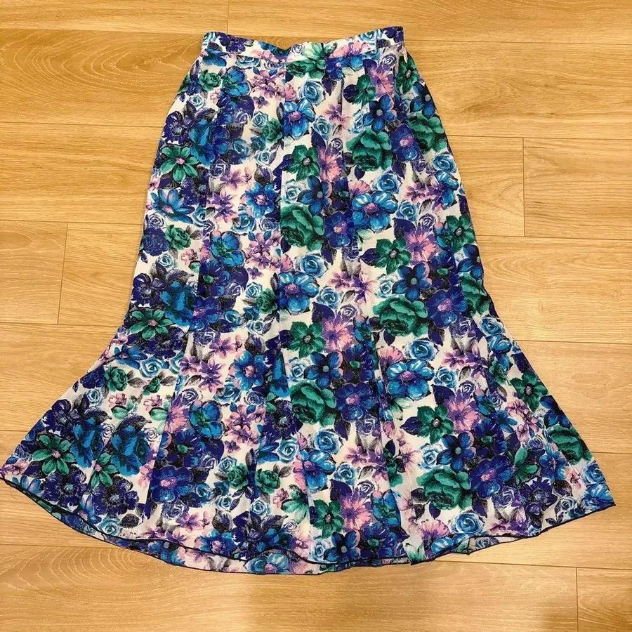 [ a0063 ] #Tsuki__shop* 방문해 주셔서 감사합니다. [ 특징 ] 화려한 블루 x 그린 계열의 꽃무늬가 인상적인 플레어 실루엣의 롱 스커트입니다* 허리는 사이드 지퍼 + 밴딩 사양으로 입고 벗기 쉬우며, 안감 부착으로 안심하고 착용할 수 있습니다 ♪ [ 사이즈 ] 표기: 9 M 사이즈 상당 W 62〜66 ( 평평하게 놓음 약 62cm ) 총길이: 약 73cm 밑단 폭: 약 85cm [ 소재 ] 겉감: 폴리에스테르 100% 안감: 있음 ✽ [ 컬러 ] 블루 계열 x 그린 계열 x 핑크 계열 꽃무늬 ❁ [ 상태 ] 눈에 띄는 상처나 얼룩 없이, 비교적 깨끗한 상태입니다 ♪ [ 추천 포인트 ] 존재감 있는 꽃무늬로 코디의 주인공으로 ♪ 봄~가을까지 폭넓게 사용할 수 있는 아이템* 상의에 따라 캐주얼하게도, 깔끔하게도 ◎ [ 배송 ] 방수 대책을 하여, 정성껏 포장 발송하겠습니다. 24시간 언제든지 구매 대환영! 선착순 ♪