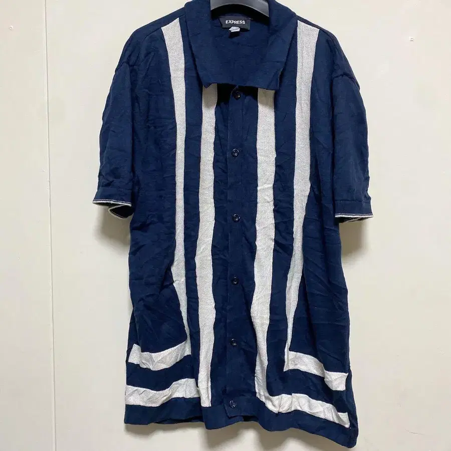 EXPRESS [ L ] 네이비 화이트 스트라이프 반팔 셔츠 원피스 L