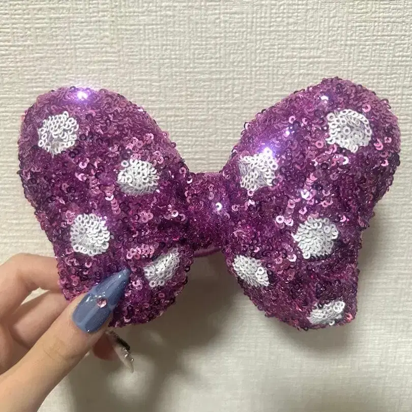 데이즈니 리본 머리끈 보라색 스팽글 미니 리본