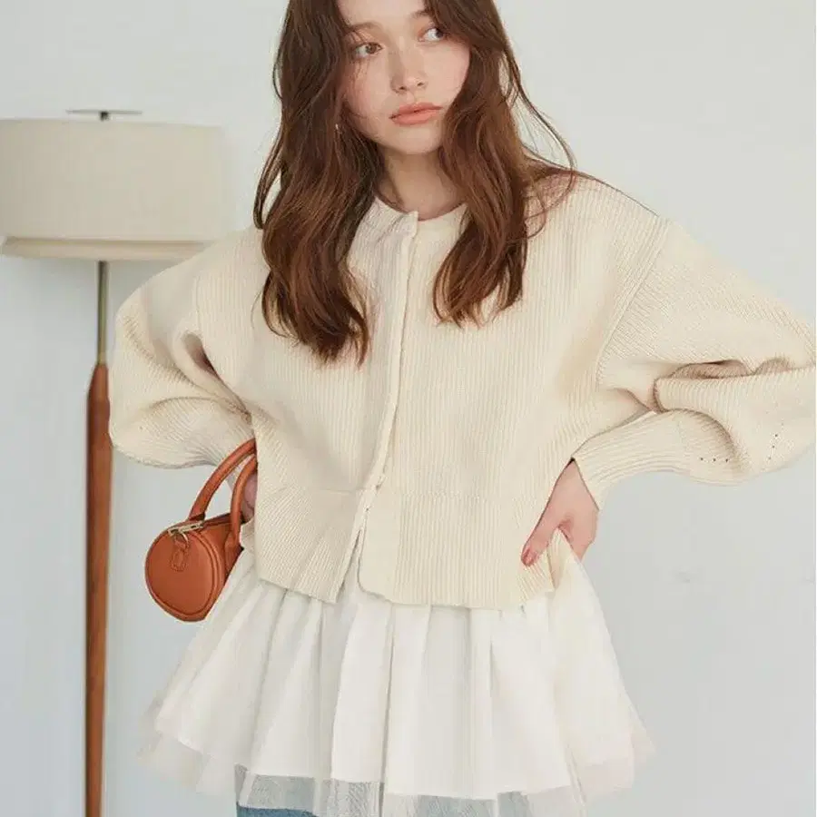 새상품 티티베이트 페플럼 레이어드 니트 가디건 아이보리