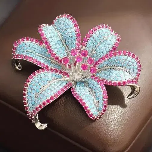 이탈리아 구매 파랑과 핑크 꽃 브로치