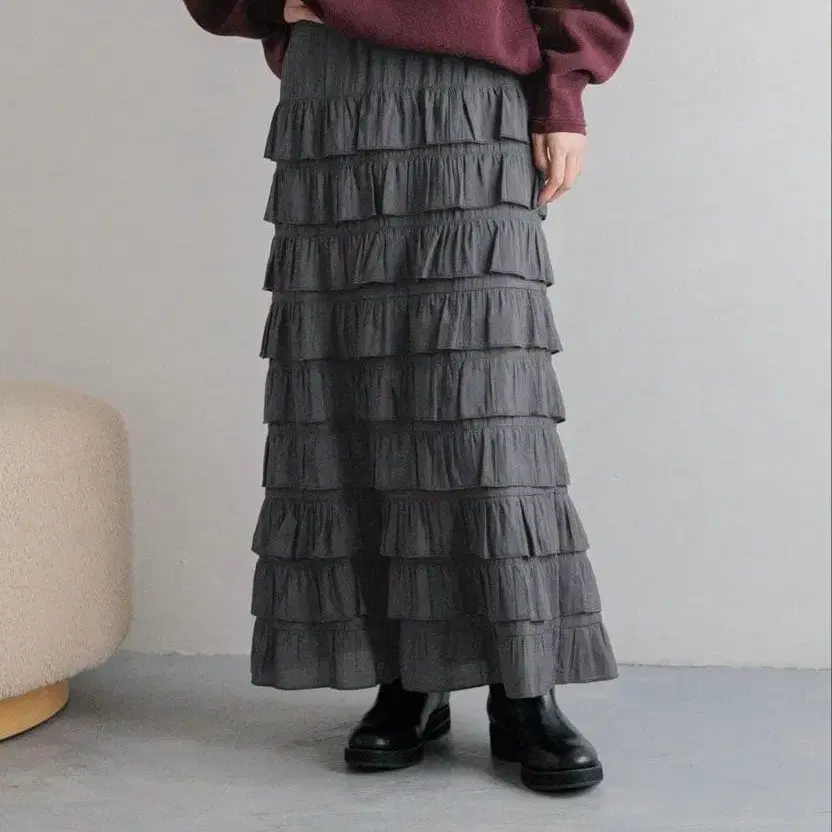 티어드 프릴을 많이 더한 고급스러운 스커트입니다.
