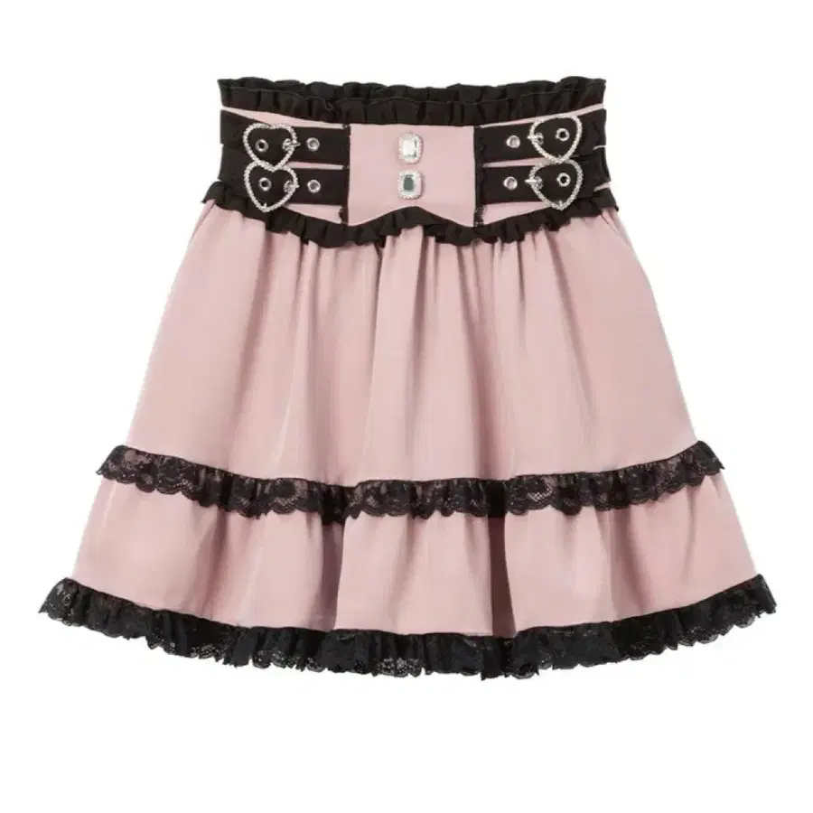 반짝이는 비쥬 버튼과 하트 벨트가 달린 프릴 가득 티어드 스커트
