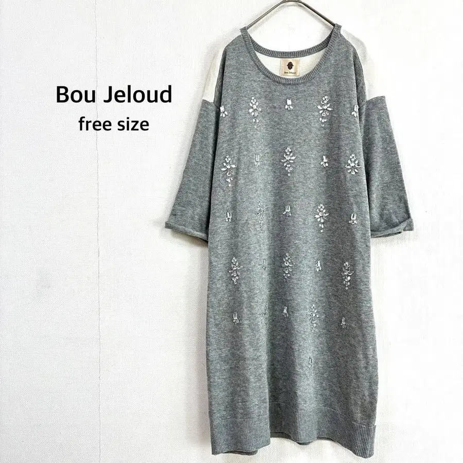 [ 부즈루드 ] 니트 원피스 F 그레이 튜닉 비쥬 부착 7부 소매