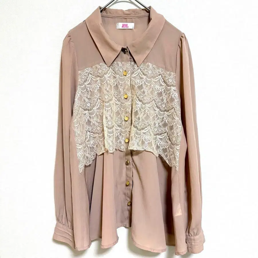 [ Ryu Ryu ] 퍼프 슬리브 레이스 쉬폰 프릴 셔츠 블라우스 핑크