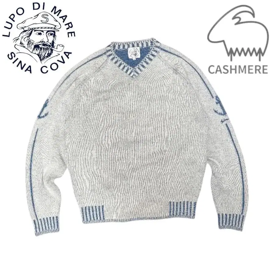 SINACOVA 화이트 캐시미어 V넥 니트 스웨터