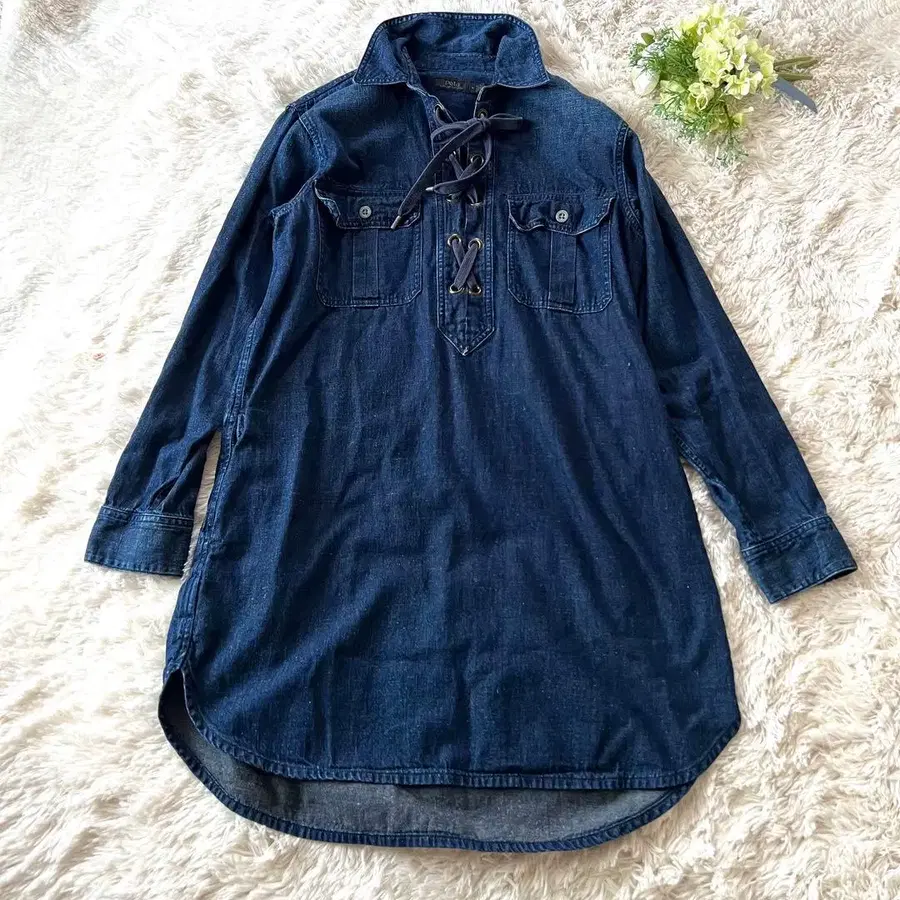 랄프 로렌 데님 레이스업 셔츠 원피스 긴팔 튜닉