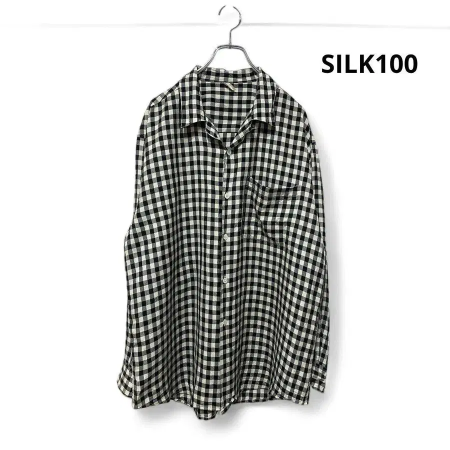 실크 100 깅엄 체크 셔츠 블랙 화이트 L