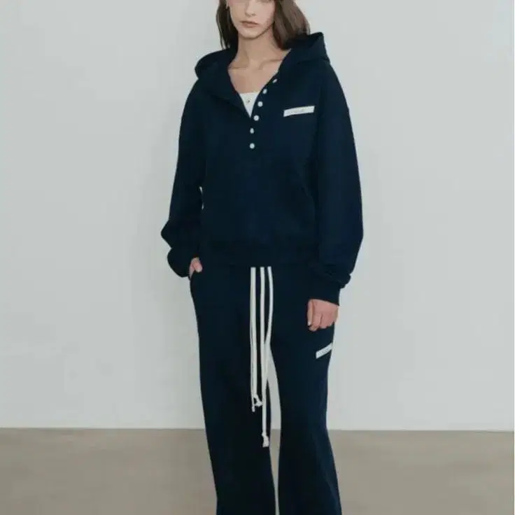 SSIN AND LEE 테일러 코튼 맨투맨 후드 T셔츠 네이비