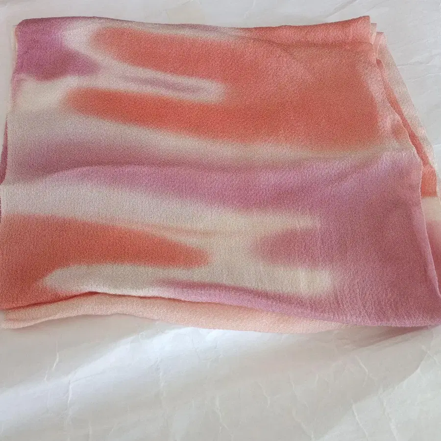 오렌지 핑크 그라데이션 오비 장식 천 크레이프 원단