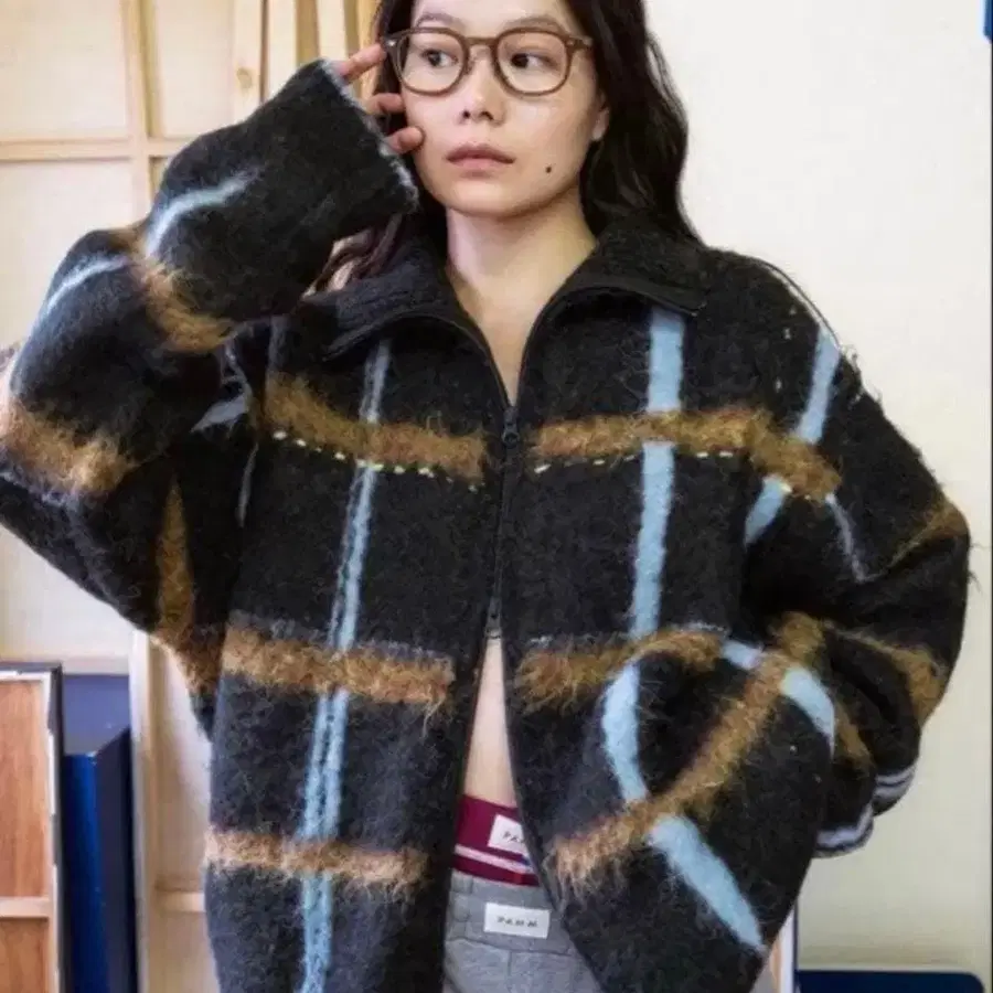 [ 새상품 ] PAMM 투명한 공기의 체크 지퍼 니트