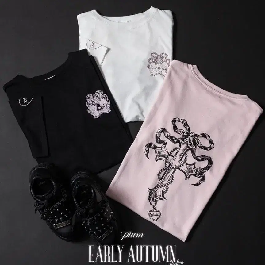 pium 리본 크로스 오버사이즈 반팔 티셔츠