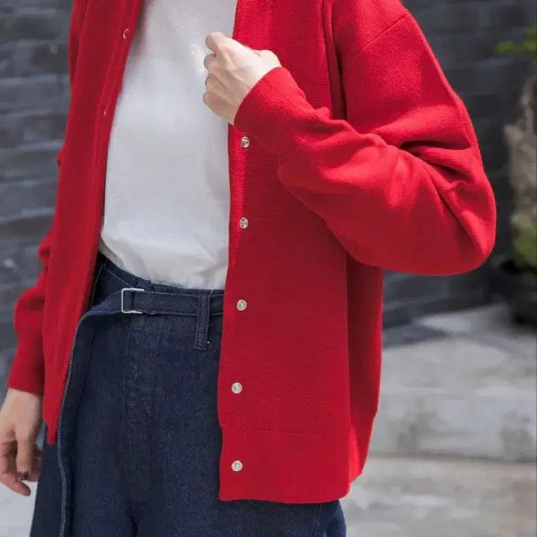 새상품 FORK & SPOON 미라노 리브 크루넥 가디건 레드