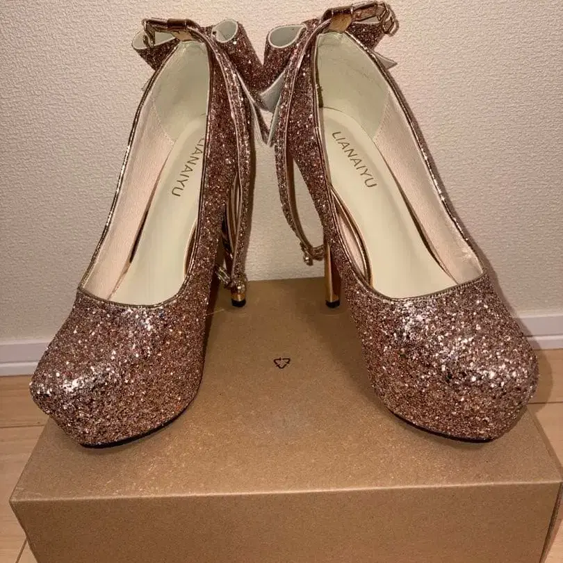 글리터 리본 포함 하이힐 펌프스