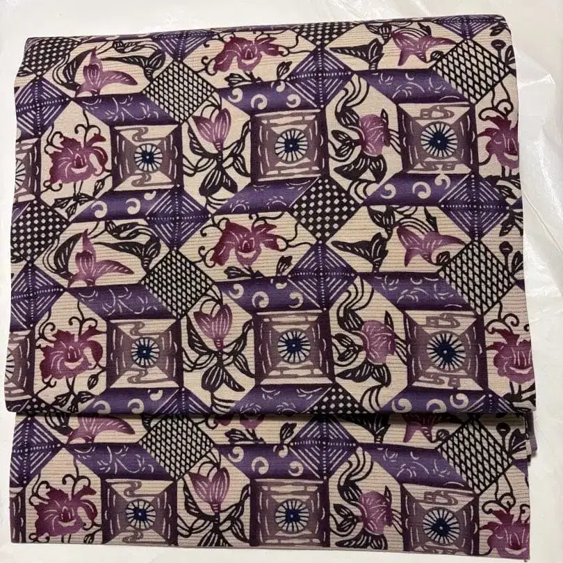 빙가타 에이준 나고야 오비 보라색 계열 꽃무늬
