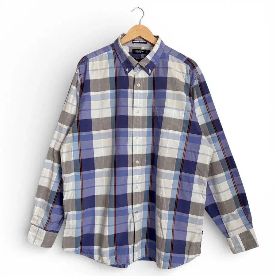 NAUTICA 노티카 체크 셔츠 XL 버튼 다운 자수 남성용 구제 의류