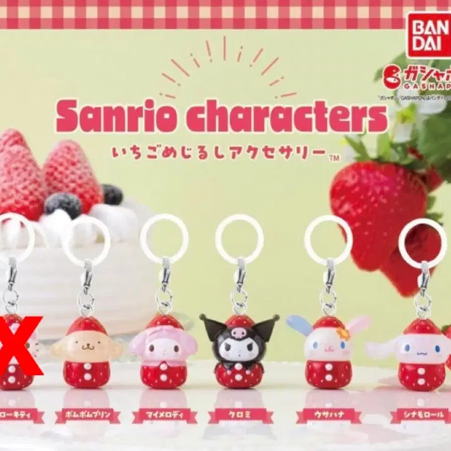 산리오 캐릭터즈 딸기 메지루시 액세서리 가챠 5종