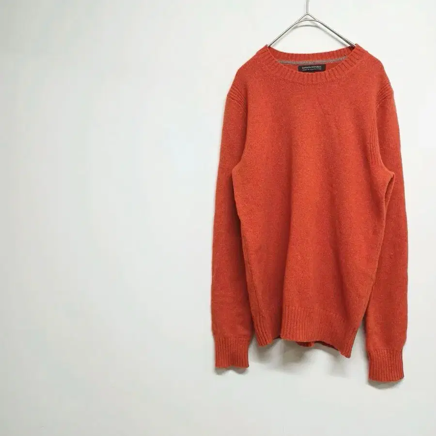 오렌지색 크루넥 니트 스웨터, 부드러운 니트 소재.