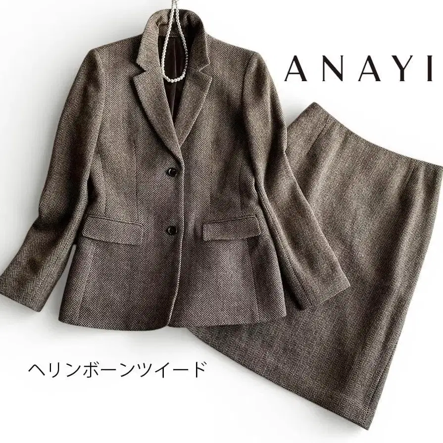 새상품급 ANAYI 헤링본 트위드 알파카 혼방 셋업 수트 브라운 계열