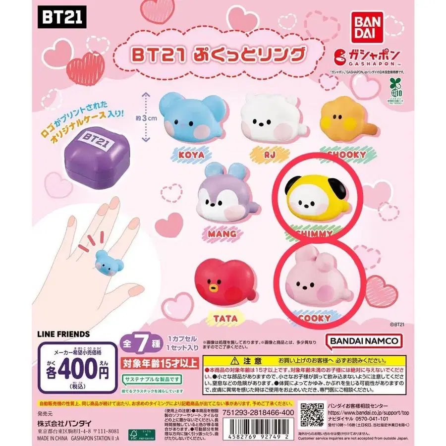 BT21 푹신푹신 반지 COOKY 쿠키 CHIMMY 치미 가챠
