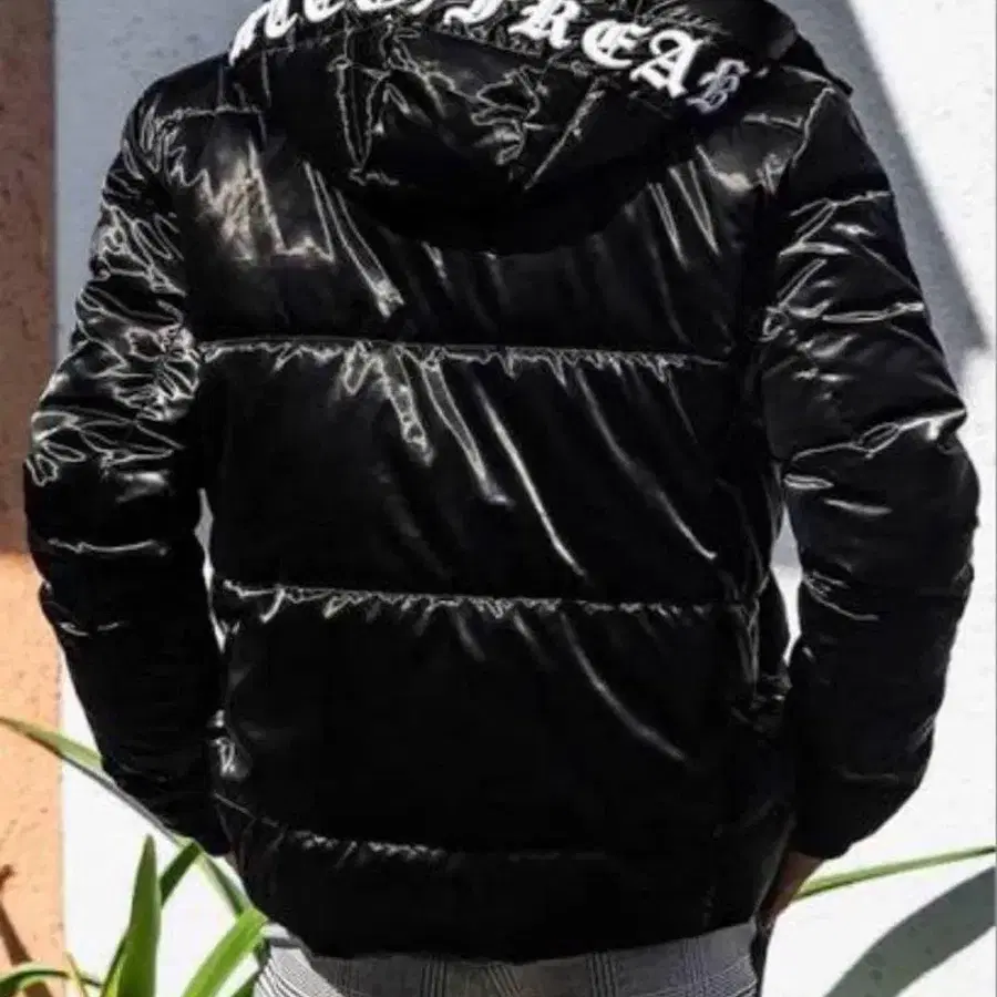 블랙 다운 자켓 후드 부착