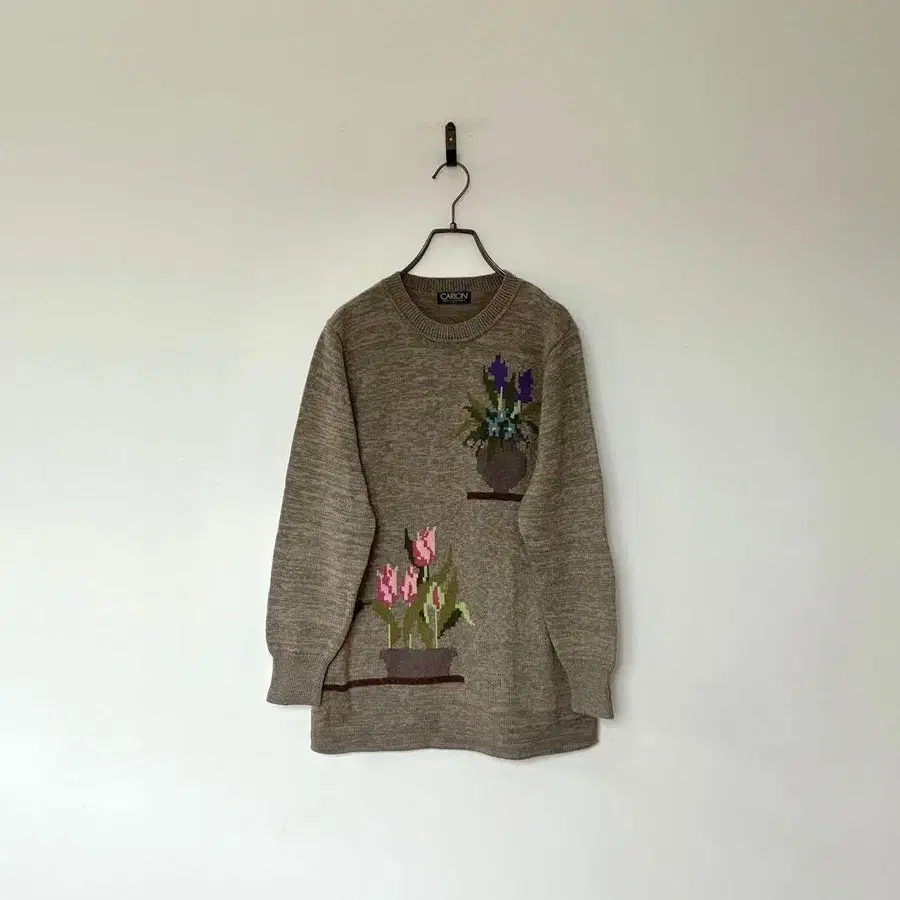 구제 의류 꽃무늬 니트 하이 게이지 레트로 그레이지 M 걸리시 튜닉 기장