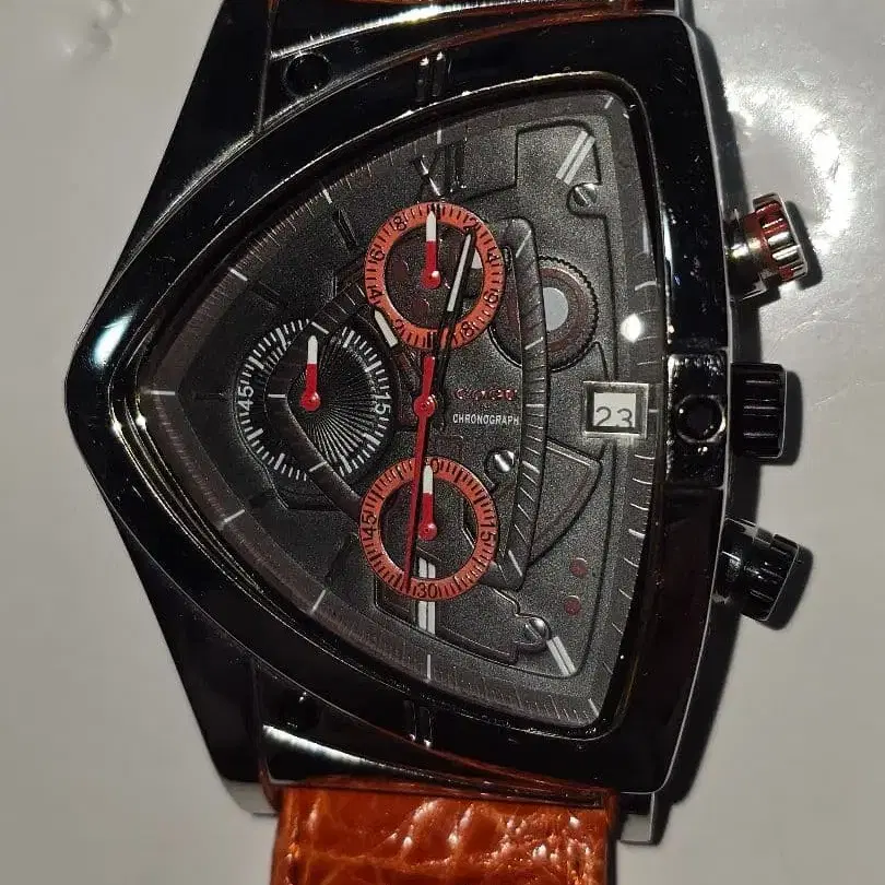 COGU 트라이앵글형 크로노그래프 손목시계 블랙 레드